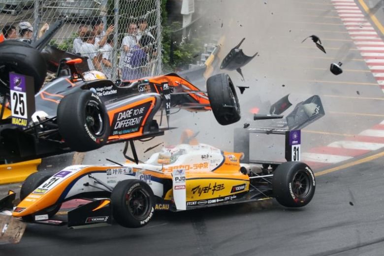 Mới đây tại Macao (Trung Quốc) trong giải đua xe Grand Prix, một tai nạn vô cùng hi hữu đã xảy ra: một chiếc xe đua đã mất lái, va chạm với một xe của đội khác, bị bay lên và rồi hạ cánh (đúng là bay thật) trúng khu báo chí.
