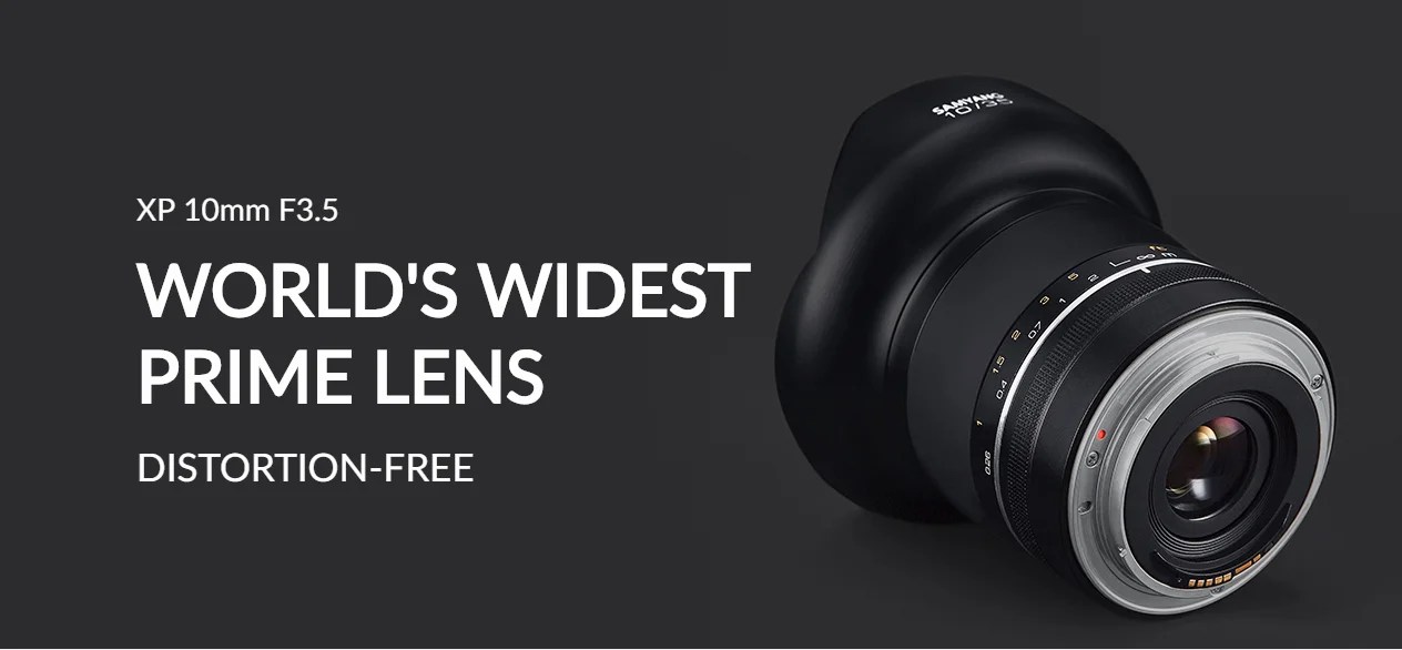 Điều đáng chú ý nhất ở sản phẩm này là ống kính góc rộng 10mm thứ ba mà không phải fish-eye (mắt cá). Trước đây, tiêu cự góc rộng “không fisheye” rộng nhất là của sản phẩm Laowa 10-18mm f/4.5-5.6 FE đến từ Trung Quốc và ống Voigtlander 10mm f/5.6, đều cho người dùng Sony. Mặc dù không phá được kỉ lục 10mm của Laowa, nhưng Samyang XP 10mm f/3.5 là ống kính 10mm một tiêu cự đầu tiên cho full-frame với khẩu độ lớn hơn.